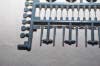 | More parts for the forward superstructure, boat davits, funnels, funnel piping and funnel caps, aztec stairs, searchlights and guns populate this sprue. The stern walk and its canopy are also here. The funnels are slide molded, with fine, molded on rails. Only one of these funnels is used on Haruna. | |||||||||||