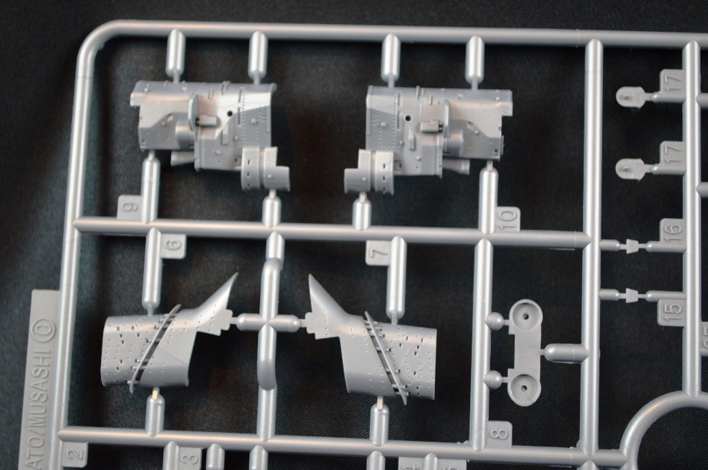 The large superstructure sections for the ships extensive AA armament are included on this sprue, along with various gun tubs and other AA related parts. |