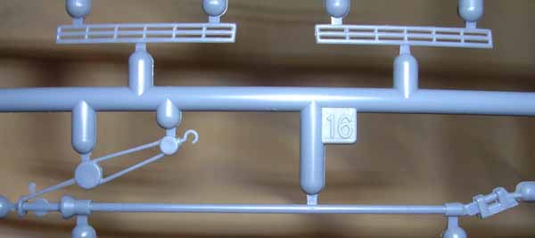 Parts include deck plates and some funnel pieces such as the aft funnel and covers. The finely detailed guards that cover the funnel, if used them, will have to be very carefully removed and attention paid while removing the seams. Ladders molded onto the funnels will be difficult to remove around the molded on jackstays unless you are removing those for photoetch as well.