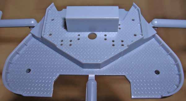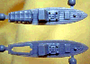 Larger deck pieces have numerous holes in them for the triple-A guns and ammunition lockers. No anchor chains are molded onto the deck.