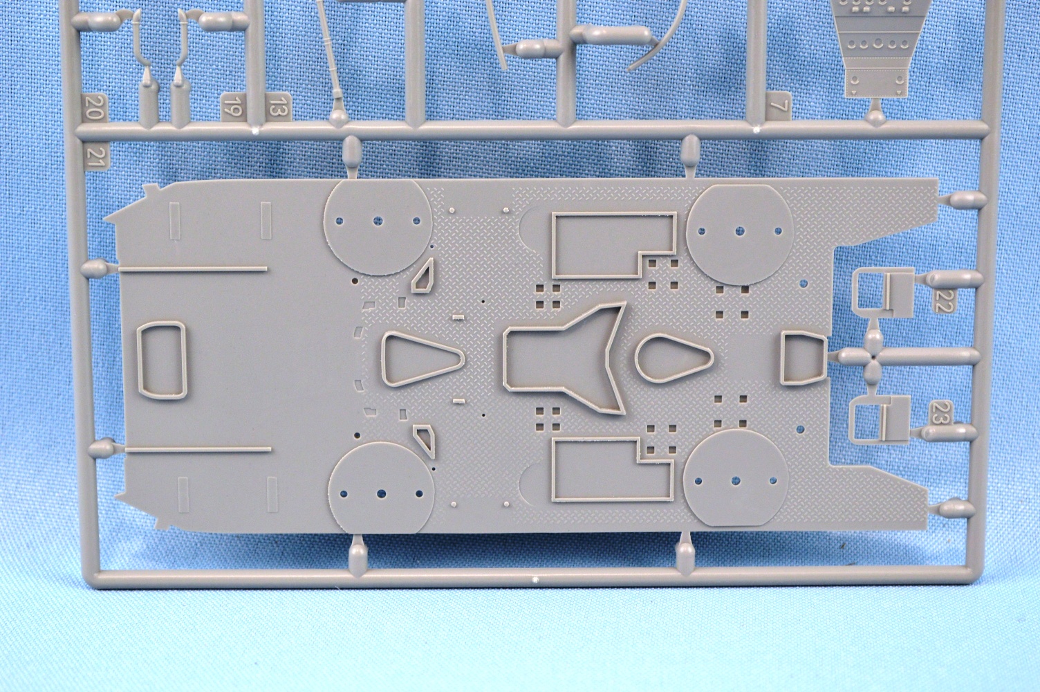 | This is the only Atago specific plastic sprue in the box. On it is the new upper deck, with diamond tread plating detail, the new bridge face, with the correct porthole layout, a revised back of the bridge to accommodate air intake pipes, and new vent cowlings specific to Atago. | ||||||||||