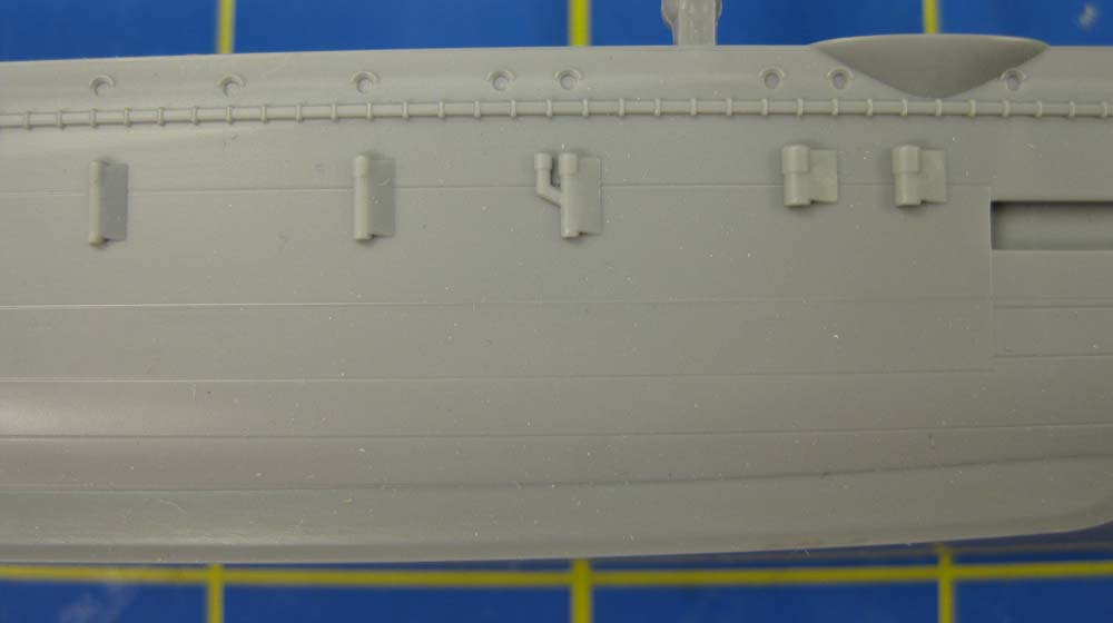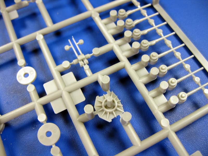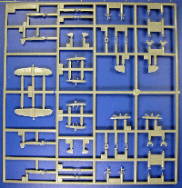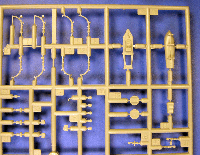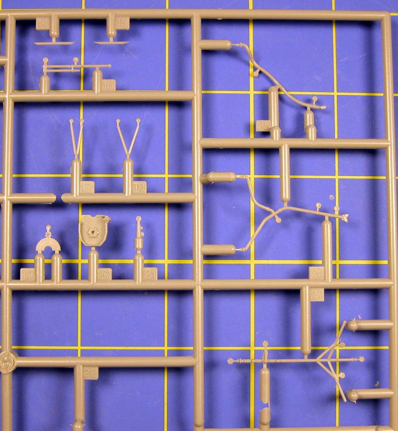 This sprue has many fine parts, including the masts and yards, external steam pipes and the boom for the aircraft handling crane. |