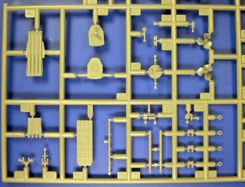 This sprue has a variety of small parts, but only the launch and the cutter from this sprue are used on Noshiro. |