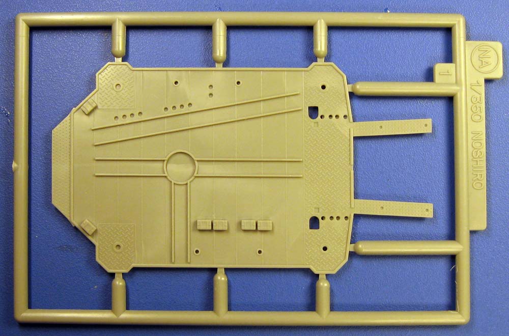 Sprue NA is the aircraft handling platform; the configuration of the turntables and rails is unique to Noshiro, making this one of the unique parts to this kit. |