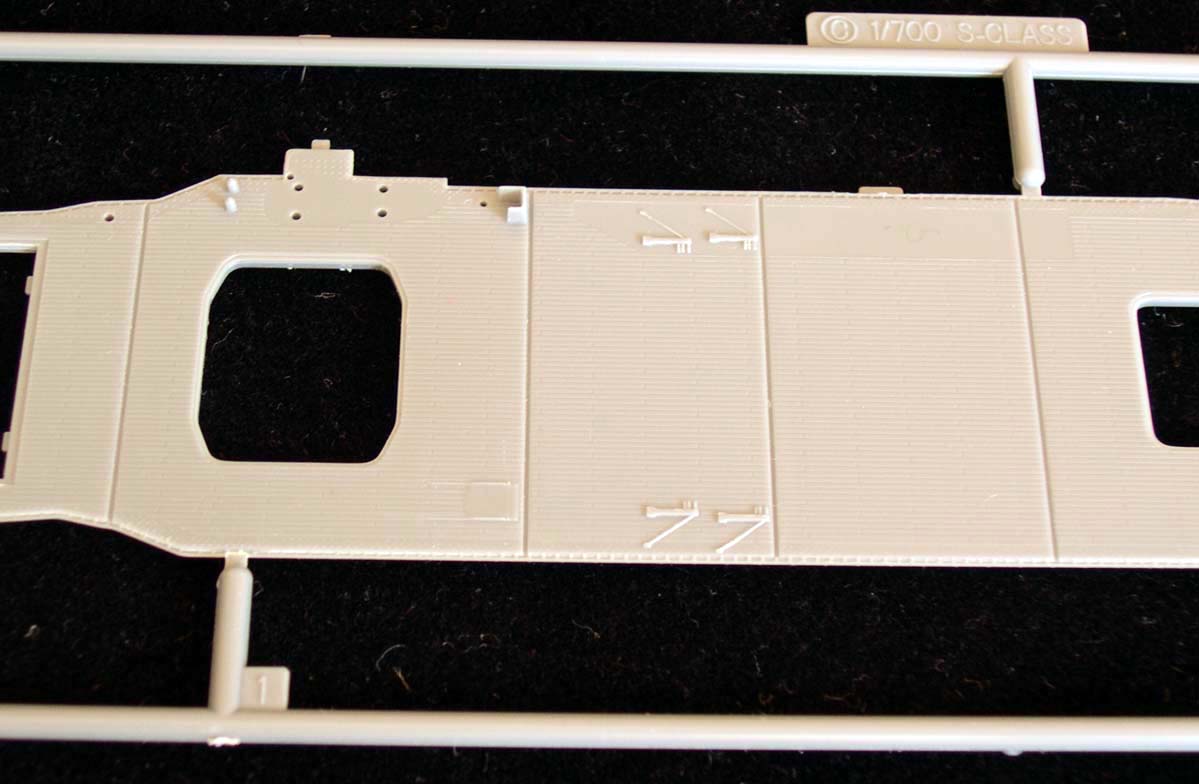 The kit is molded in light grey. Hull and deck details are very sharply molded. All the kit surfaces have a nice matt finish. On my kit, there was no flash, nor any sinkholes, though there are a few injection formation transition areas (for lack of a better term) within the plastic of a few pieces. No matter, as the effect is only visual and will be covered by paint.