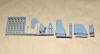 | Here we have parts for the LCAC, both sides and fan units. Another sprue has the M1A1 MBT parts. Note, The turret for the M1A1 has a brass barrel cast into the resin turret. Nice touch there. Usually parts like barrels very easily break off or already come broken before one gets to look things over. The two main stack bodies are in J as is the boat davit center spreader bar. Pri-fly part and the crane's main body. There are 48 inflatable life raft canisters on sprue J. The side parts and duct fans are included here as well. | ||||||||||||||||||||||||||