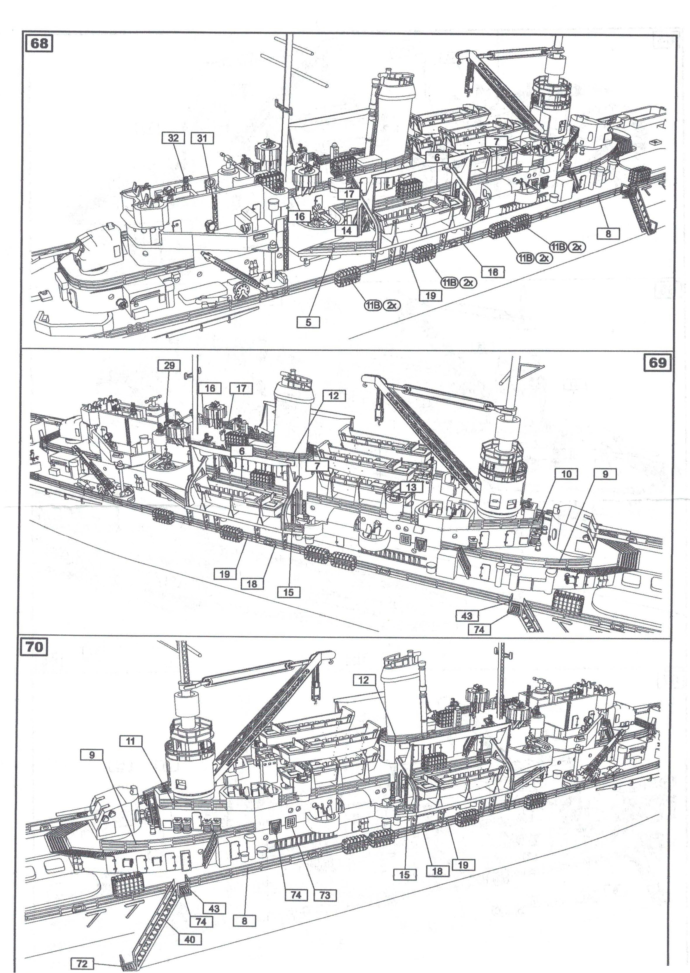 the ship. The parts also include 6 LCVP landing craft; 2 will be placed on Welin gravity davits, 1 for each side for Monitor. The other 4 LCVPs will be stacked amidships and offloaded by the large crane aft. |