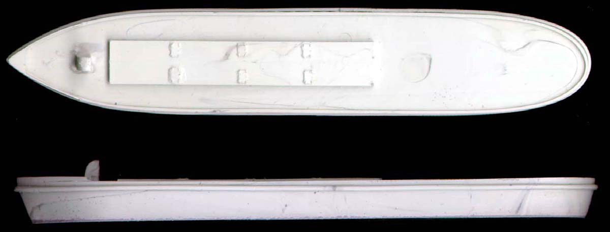 | There are two complete ships in this kit. Hulls are one piece with good surface detail. The bollards are cast separately so the hull is pretty clean. There are hatches on the oil storage compartments with the only flash on the kit on the waterline where it is simple to remove. | Click images