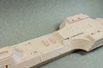 The USS Choctaw kit marks a first for Flagship Models: A CAD designed and 3D printed hull master. The result is a very clean and sharp hull casting in solid resin. My copy has a few areas where bits of the mold have flaked off and left resin blobs in a couple of spots, and some major clean-up will be required at the casting pour gate on the stern, but these are the only real issues. Detail on the hull is sharp and clean: deck planking is finely scribed, as are the plates that make up the armor plating. The kit has raised bolt heads on the armor around the forward oval casemate, along the main deck sides, and on the paddle wheel guards. Depending on what accounts you read, she may have had the armor plating removed from everywhere but the forward gun casemate - she was so heavy and slow they tried everything to lighten her. If the builder decides to go that route, it's an easy modification to sand off the bolt heads. This being a 3D printed master, there are very fine layer lines visible at certain points on the casemate. These will hopefully disappear under a coat or two of primer. For sizing, Choctaw is listed in The Old Steam Navy (the definitive reference for Union ironclads) as 270 feet long, including her ram. The kit's hull measures out to 15 1/4" overall, including the ram, which is nearly 1 1/2" short in scale. Hull width at the paddle wheel housings was 69 feet (not the 45 feet listed on Wikipedia, that measurement was without her paddle guards), which should be 4 1/3" in 1/192nd scale, with the model's hull measuring 3 3/4" at the widest point. Overall, then the hull is a bit on the small side for 1/192nd scale, but it doesn't affect the look of the ship at all. |