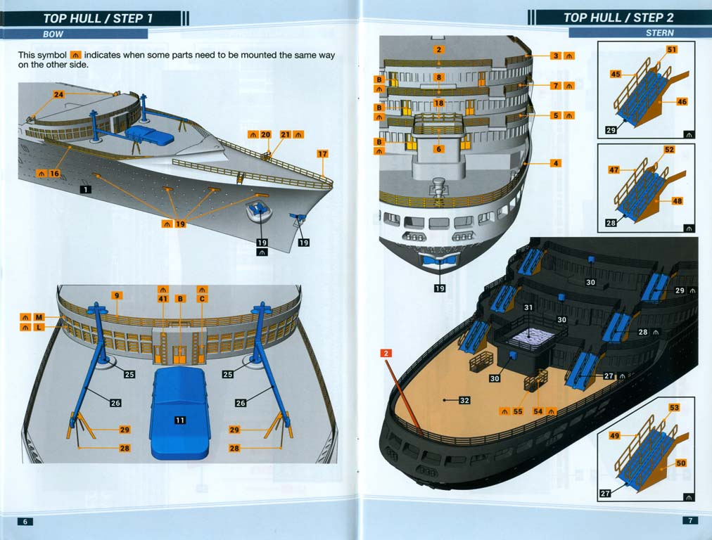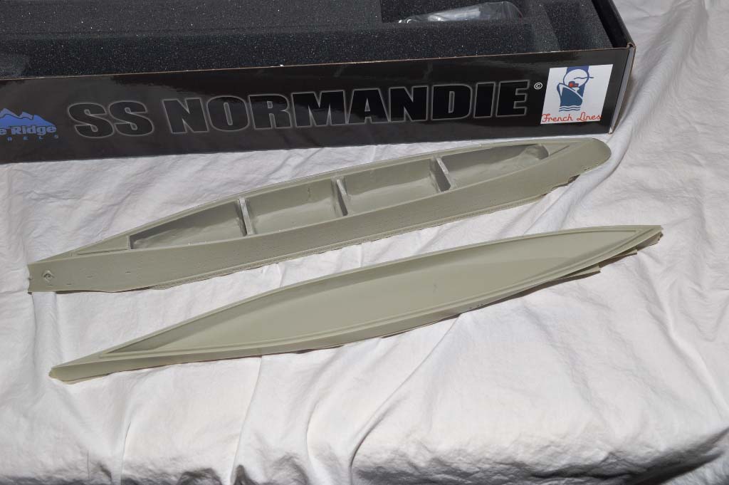 The ship was laid down in 1931, launched in 1932, and entered service in 1935. During her relatively short career, she made 139 westbound crossings from France to New York. She also won the trophy for fastest Atlantic crossing - the fabled Blue Riband - on numerous occasions. Built to a more radical Art Deco design, lavishly appointed to cater to the first class crowd, Normandie was never a real commercial success, and was occasionally subsidized by the French government. Her biggest rival, Cunard's Queen Mary, which was launched a year after the French Lines ship, was also well appointed, but built to a more traditional design, with more room for second and third class passengers. As a result, she tended to draw bigger bookings. Cunard announced that Queen Mary, when launched, would be over 80,000 tons, which would eclipse the size of Normandie. To keep the title of world's largest liner, Normandie underwent a refit in 1936, adding several thousand tons, mostly due to the addition of an enclosed tourist lounge on the aft boat deck. The record of largest liner was one she held, until the arrival of Queen Mary's running mate, Queen Elizabeth, in 1940. Normandie also swapped her three bladed propellers for four bladed props during this refit, which, along with some structural changes, helped reduce problems with vibrations. When war erupted in Europe, Normandie was in New York City - a place she would never again leave under her own power. First interned in September, 1939, then seized by the US Government just days after the attack on Pearl Harbor, Normandie - now named Lafayette by the Americans - was slated for conversion to a troopship. On February 9, 1942, during the rush to finish work, a workman's welding torch ignited life vests, which in turned ignited wood paneling that had not yet been removed. The fire quickly spread, and the efforts to contain it were mishandled. As water was poured in, the ship began to list. A suggestion from her designer, Vladimir Yourkevitch, to open the sea cocks and let her settle in the shallow water was rejected. In the end, she was abandoned and capsized in the middle of the night, crushing a fire boat in the process. Salvaged and raised by August, 1943, plans to convert Lafayette to an aircraft transport were abandoned, due to the damage to her hull and machinery. She was sold, post war, and scrapped in Port Newark, New Jersey, starting in October, 1946. For more information on Normandie, see her Wikipedia page, where most of this information was taken from. You can also find many photos of Normandie in the French Language Navies & Histoire #23. |