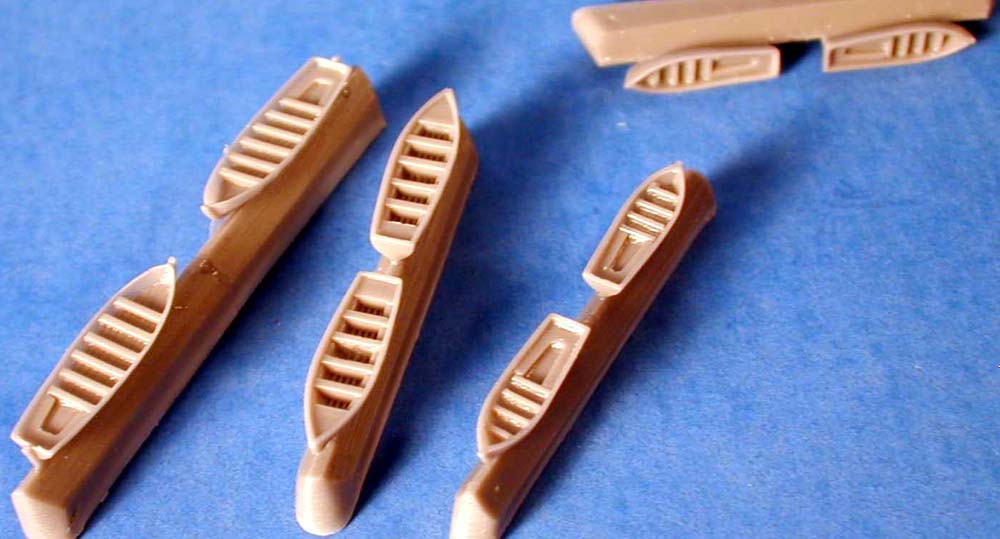 | The ships boats are very well cast with very nice detailing. Boat davits are extremely thin, but surpassingly strong thanks to the harder more durable resin that Combrig uses. | ![]() |