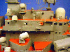 | The SS-N-22 launchers are most significant distinctive marks on the Sovremenny: They draw lot of attention to them. Unfortunately the kit’s launchers have flaws beyond repair or make-up and are too complex to be rebuilt for a modeler of my skill: There should be a depression running along the upper two launching tubes and there should be deep indentations at the side of the braces of the launchers. These indentations are represented by protrusions on the kit, while the depression is missing completely. I am left with hope for some aftermarket supplier to cast them in resin. | |||||||