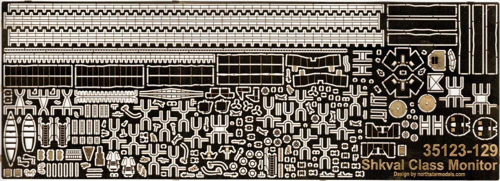Smerch entered service on 02.09.1910 as part of the Amur river flotilla. On 21.12.1921 the monitor was scuttled by the crew due to fears of foreign invaders. By 1932, the vessel was raised and restored, and was later modernized in 1936-37. By 1939, it was renamed "Kirov". Post war, "Kirov" was reclassified as a training veseels, and was later scapped post March of 1958. This kit from Combrig allows for either a full-hull or waterline build of "Smerch" in 1910 fit or the "Kirov" in a 1945 fit. (The use of the name "Kirov" is particularly confusing, as there were up to three different vessels in service with the Soviet Navy named "Kirov") |