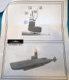 | The 3D parts come of a printing raft and includes the sail, forward diving planes, anchor, aft rudder and stabilizer combo, propeller, radar and various scopes and snorkel. The parts have thin attachment points and some of the parts have extras provided in case of breakage. The parts appear to be well detailed. Based on my experience building some other Iron Shipwrights submarine kits, the 3D printed parts are a tad brittle and care must be exercised removing the smaller parts, such as the propeller, from the raft. | |||||||||||||