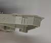 There are only two parts on "K" tree and they were both removed from the tree in a very rough and pronounced (absolutely no damage to the parts, just not close to the parts) cut and wrapped together well in foam sheet. The larger piece is the shelter deck from B barbette aft and the smaller is the lower level of the superstructure (titled the conning tower platform) that sits on the shelter deck. The sprue gates left from the cut are on the bottom of the pieces and are easily dealt with if you have sprue nippers, a razor saw, or coarse sanding sticks or files. Once cleaned of the extra plastic the pieces fit very well against each other and the Forecastle deck piece (Q2) below. The Conning tower platform level is rendered as piece K1 and is slide molded to offer a fairly complex shape with minimal construction. There are a couple of angled bulkheads that result in a slightly oval porthole but the only two that I would characterize as "obvious" are under an overhanging platform in shadow and not really noticeable. The Shelter deck piece K2 has two sections; a slightly higher section behind B turret that supports the main superstructure tower and a slight lower section with the 4" quick-fire gun mounts and ships boats. This area is rendered with a planked wooden deck when it was in fact metal and should be mostly smooth (there were some radial metal strips welded or otherwise fastened to the decks around the 4" guns to provide some extra traction). This may be problematic to fix as the part is fairly busy with details including some boat cradles, vents, and alignment lines for various separate pieces of the super structure. While nicely done, in this case they may prove tedious to deal with while filling the engraved deck planking for those that choose to do so. |